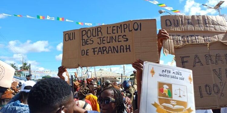 Ce mercredi à Faranah, il y avait du monde partout. La campagne de vulgarisation pour le référendum du 21 septembre a rassemblé des centaines de jeunes dans les rues. Et il ne s’agissait pas juste de dire “oui” à la nouvelle constitution. Non. Les pancartes étaient claires : emploi pour les jeunes, éducation, opportunités locales… Les messages étaient criants, parfois drôles, souvent très directs.