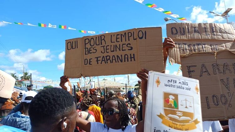 Ce mercredi à Faranah, il y avait du monde partout. La campagne de vulgarisation pour le référendum du 21 septembre a rassemblé des centaines de jeunes dans les rues. Et il ne s’agissait pas juste de dire “oui” à la nouvelle constitution. Non. Les pancartes étaient claires : emploi pour les jeunes, éducation, opportunités locales… Les messages étaient criants, parfois drôles, souvent très directs.