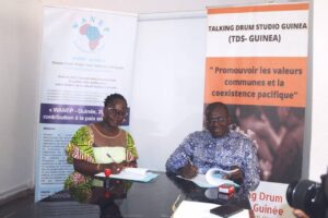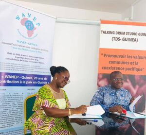 Le Réseau Quest Africain pour l’Édification de la Paix (WANEP-Guinée) et le Talking Drum Studio Guinea (TDS-Guinée), ont signé le lundi 13 janvier 2025, un protocole d’accord à Conakry. Les deux organisations œuvrant toutes dans la promotion de la paix et la bonne gouvernance, entendent unir leurs efforts pour afin de mieux impacter la société. D’où la signature de ce protocole d’accord, qui a été parafé de WANEP-Guinée, par la coordinatrice nationale par intérim, madame Koly Lucie HEBELAMOU et de monsieur Bambo DIABY directeur exécutif de TDS-Guinée.