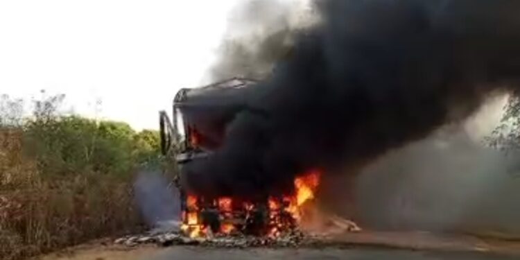 Selon les premiers témoignages, la moto, en route pour Tokounou, s’est retrouvée sous les roues du camion venant de Kankan. L’impact est brutal. Le frottement du métal contre le goudron génère une étincelle, un infime éclat de lumière qui déclenche l’irréparable. En un instant, la moto s’embrase, entraînant avec elle le camion chargé de sacs de riz.