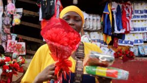 Dans un coin du marché, les vendeurs se frottent les mains. La fête est une aubaine pour eux. Les bouquets de fleurs s’écoulent rapidement, tout comme les boîtes de chocolats et les bijoux fantaisie. Mais Mabinty voit les choses autrement. Pour elle, la Saint-Valentin est avant tout une affaire de cœur. « J’ai fait des jumeaux pour mon mari, ça, c’est un cadeau que personne ne peut égaler », lance-t-elle, avant d’ajouter dans un éclat de rire : « Mais il aura aussi sa surprise ce soir. Ça, c’est entre nous. »