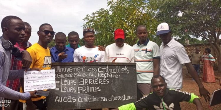 Comme ceux de N’Zérékoré, les enseignants contractuels de la sous-préfecture de Sangarédi étaient ce lundi 18 septembre 2023, devant le siège de la mairie de Sangarédi. Ils réclament le paiement de leurs arriérés et leurs primes.
