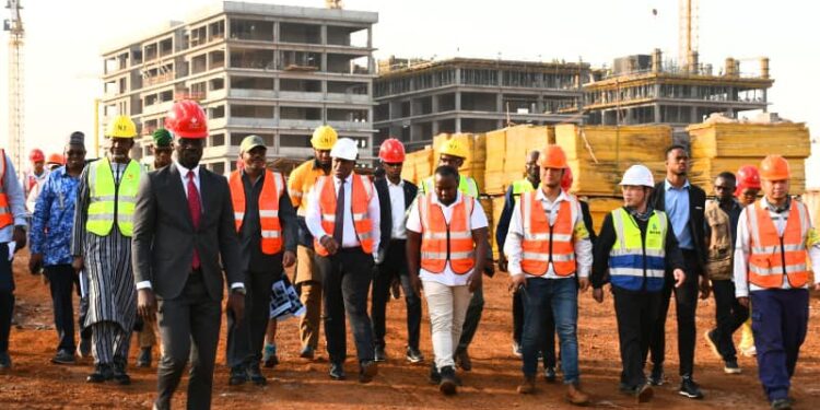 Le Président du CNT, Honorable Dr Dansa KOUROUMA, à la tête d’une forte délégation a effectué le mercredi 08 janvier 2025, une visite de terrain sur le site de construction du futur siège de l’Assemblée Nationale à Koloma. La délégation était composée des Honorables Conseillers nationaux, des membres du Gouvernement et du Gouverneur de la Banque Centrale de la République de Guinée. Il a été question pour les membres de la mission, de toucher du doigt, les réalités du chantier et d’apprécier le niveau d’avancement des travaux dont la pose de la première pierre a eu lieu le 26 mars 2024.
