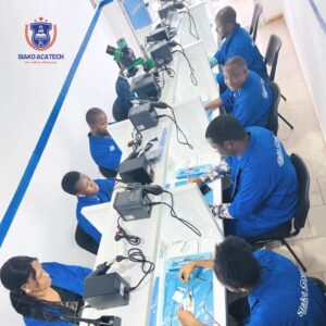 Désormais il existe en Guinée une académie de formation de techniciens qualifiés, initiés à l’utilisation de matériels et logiciels dédiés à la réparation de téléphone à travers un laboratoire équipé par des outils de dernières générations permettant de résoudre efficacement tous les problèmes liés à la réparation de smartphone.
