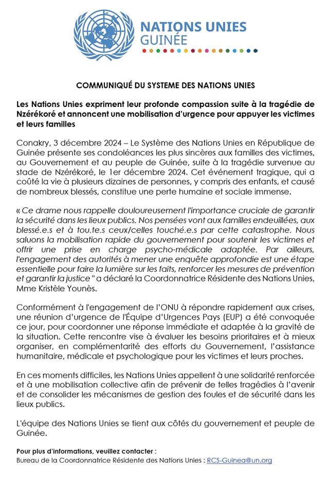 Tragédie à N’Zérékoré : Une réunion d’urgence convoquée par le Système des Nations Guinée (Communiqué)