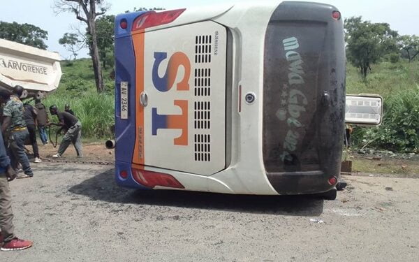 ‘’C’est un bus de la nouvelle société « SOUMAORO TRANSPORT » (ST), en provenance de la capitale Conakry pour Sinko qui s’est renversé au niveau d’un virage’’ rapporte le correspondant de l’AGP.
