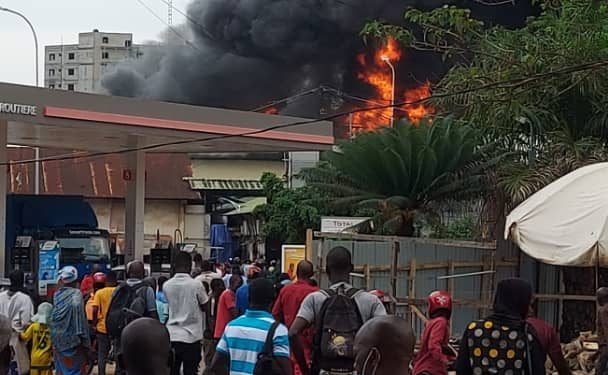 Un grave incendie s’est déclaré ce mardi 28 juin 2022 aux environs de 11 heures à l’Usine ‘’LIPCO’’ située au quartier Koulewoundy, Commune de Kaloum à Conakry. Aucune perte en vie humaine n’est pour le moment à déplorer, ni de blessés légers ou graves, mais les dégâts matériels sont inestimables. Rencontré sur les lieux de l’incendie, un des travailleurs explique les circonstances de ce drame enregistré dans leur usine qui existe depuis plus de 20 ans : « C’est ce matin que nous avons vu subitement le feu sortir au niveau de la toiture de notre bâtiment et immédiatement nous avons fait appel aux sapeurs-pompiers qui sont venus et ont commencé à éteindre le feu. Ils ont trouvé que le bâtiment est très élevé et sans accès, pourtant le feu était au niveau de la toiture, c’est ce qui les a compliqués une intervention plus rapide. Mais, il faut reconnaitre qu’ils ont fait leur mieux avec l’appui des voisins qui ont eux aussi fait un travail remarquable. Malheureusement, nous avons enregistré beaucoup de dégâts dont on ne peut pas pour le moment évaluer le cout de la perte, parce qu’il y’avaient des meubles, des appareils de bureaux, des ordinateurs, des climatiseurs, des imprimantes, des fauteuils etc. », a-t-il déclaré.