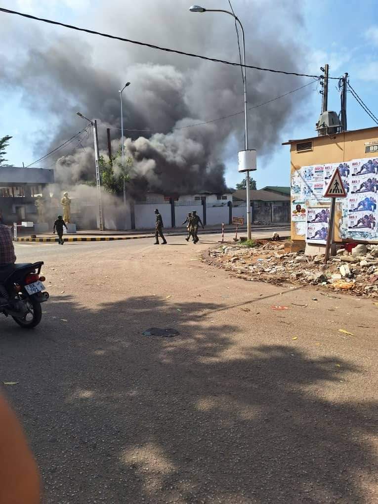 Des images prises ce matin (samedi 11 mai 2024) montrent une fumée devant le Camp Samory Touré, sis dans la Commune de Kaloum à Conakry.