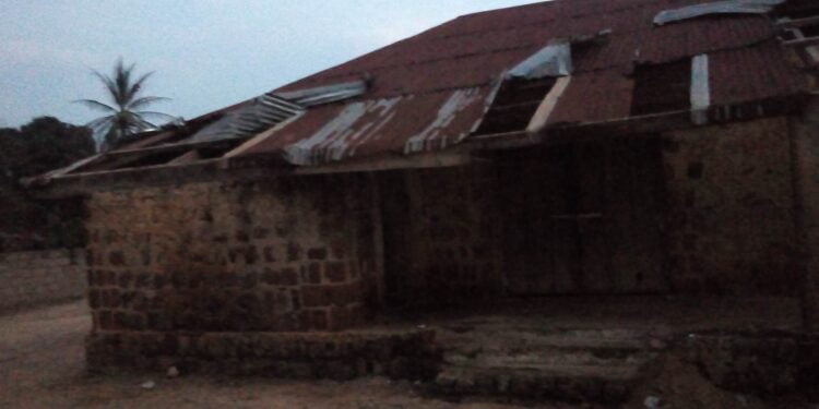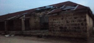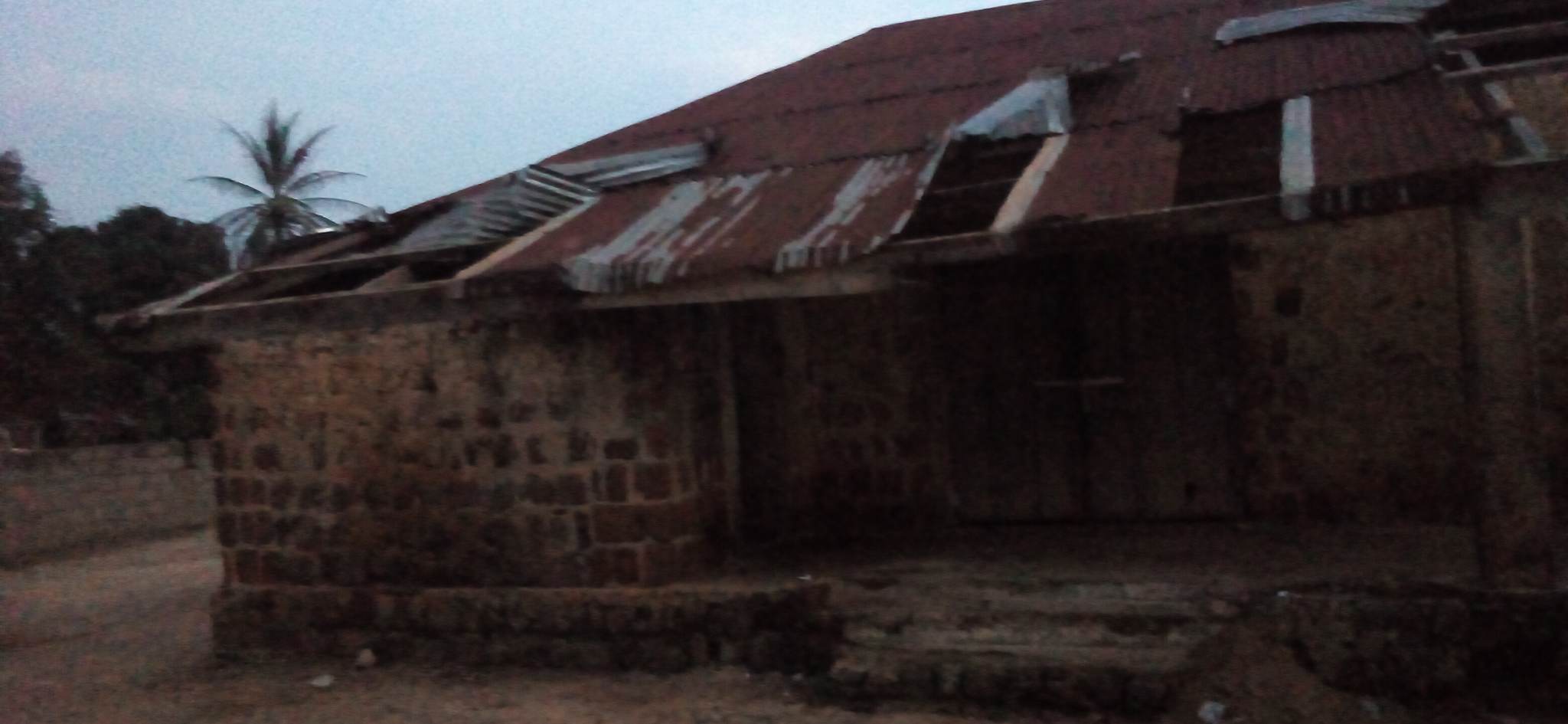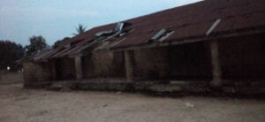Construit en pierre taillée et joint de ciment, ce premier bloc de bâtiment comprend trois salles de classes et une direction. Malheureusement, les toitures du bâtiment central et les trois autres bâtiments qui l’entourent se dégradent au jour le jour et les habitants craignent à l’approche des grandes pluies.